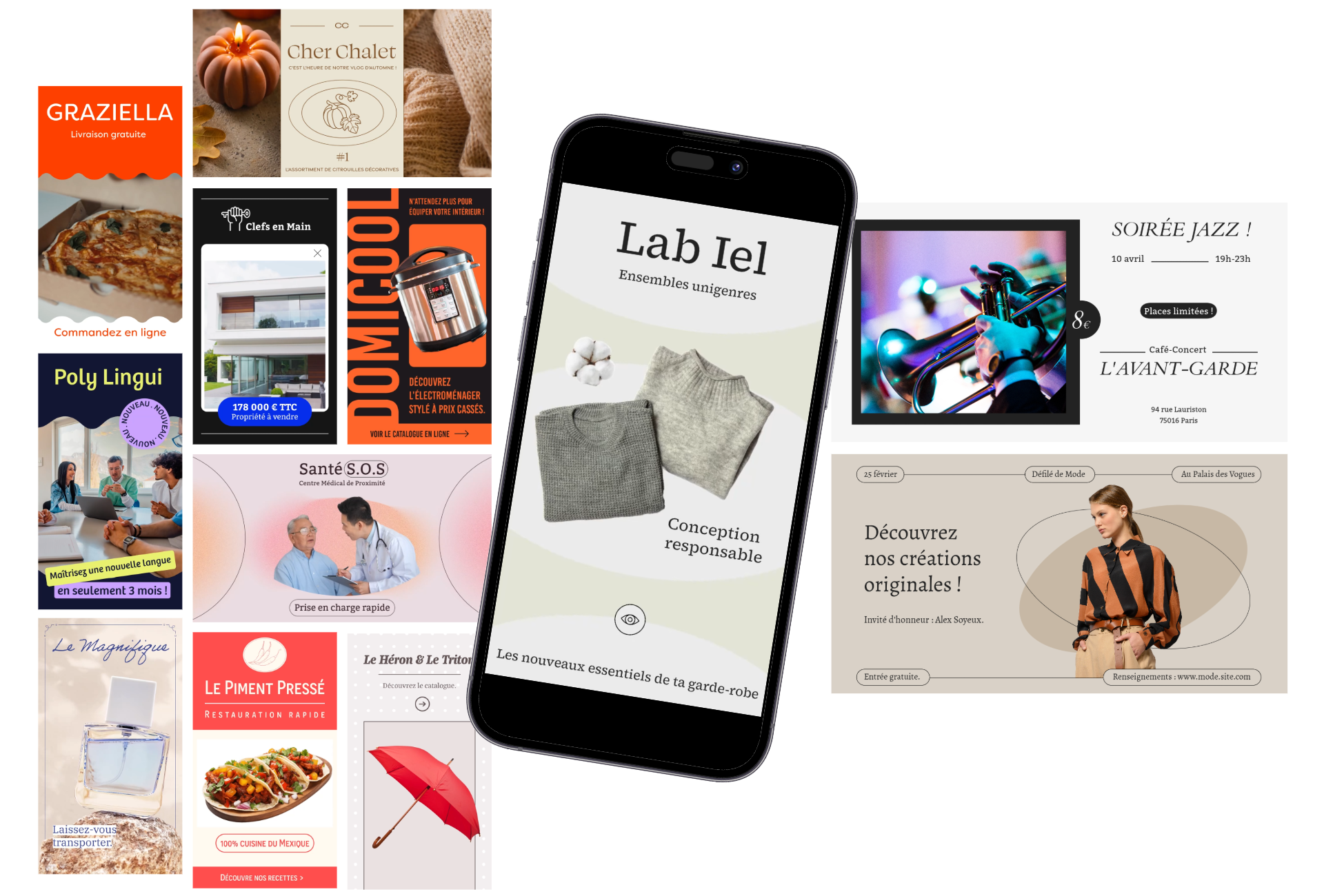 J'ai pu réaliser des créations variées à destination des entreprises, collectivités, organismes culturels, PME, associations ou particuliers, aux ambiances graphiques variées pour être en mesure de s'adapter à tous les styles (modern, bold, retro, classic...).